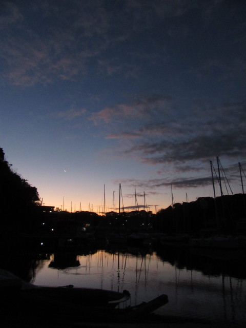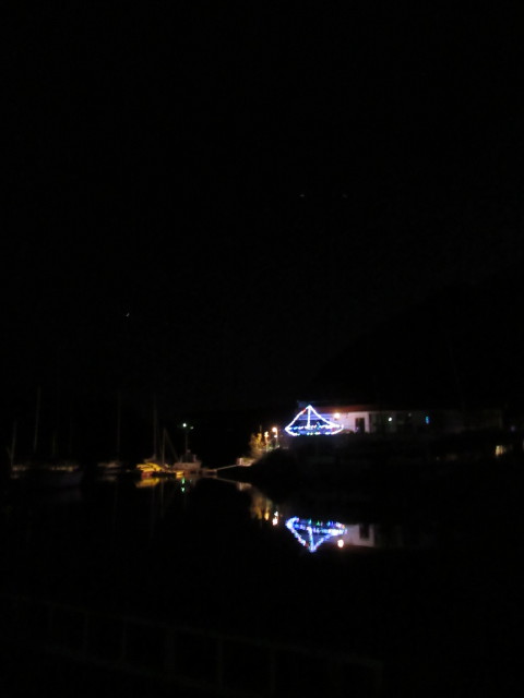 日の出前に少々早出で会社に来ました。このイルミネーションも今日には片付けます。