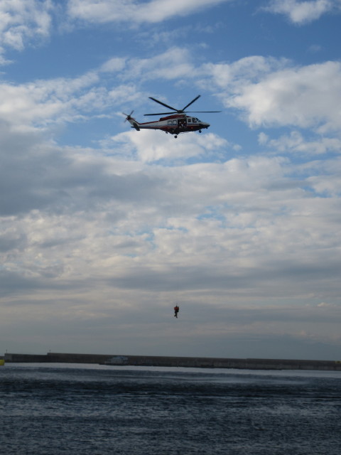 自分から梯子を上がって船へ・・・という感じだったので、そうじゃない人の救助訓練も見てみたかったです。