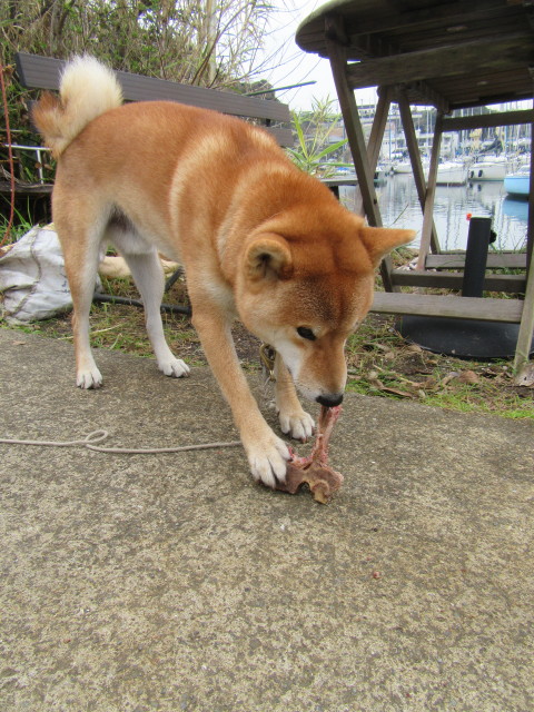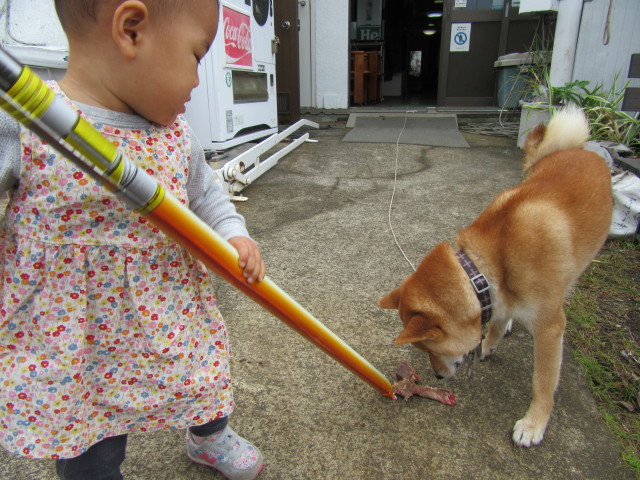 大事な骨にちょっかいだした子供に、これまためったに出さない本気の唸り声で威嚇していました。笑